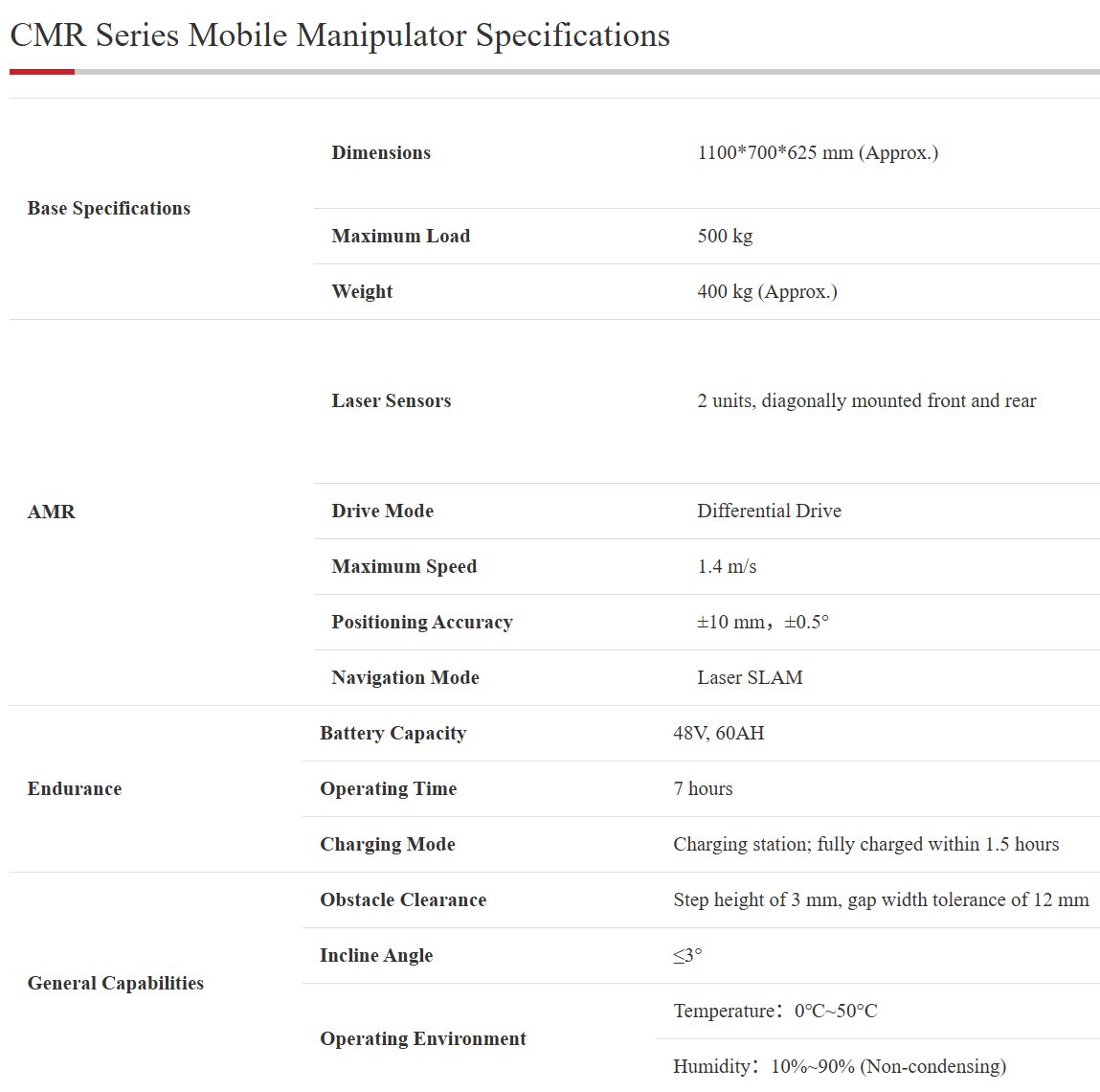 • 기름진 표면에서의 위치 정확도: ±10mm; 로봇팔 실행 정확도: ±0.02mm; 미끄러운 환경에 적합.